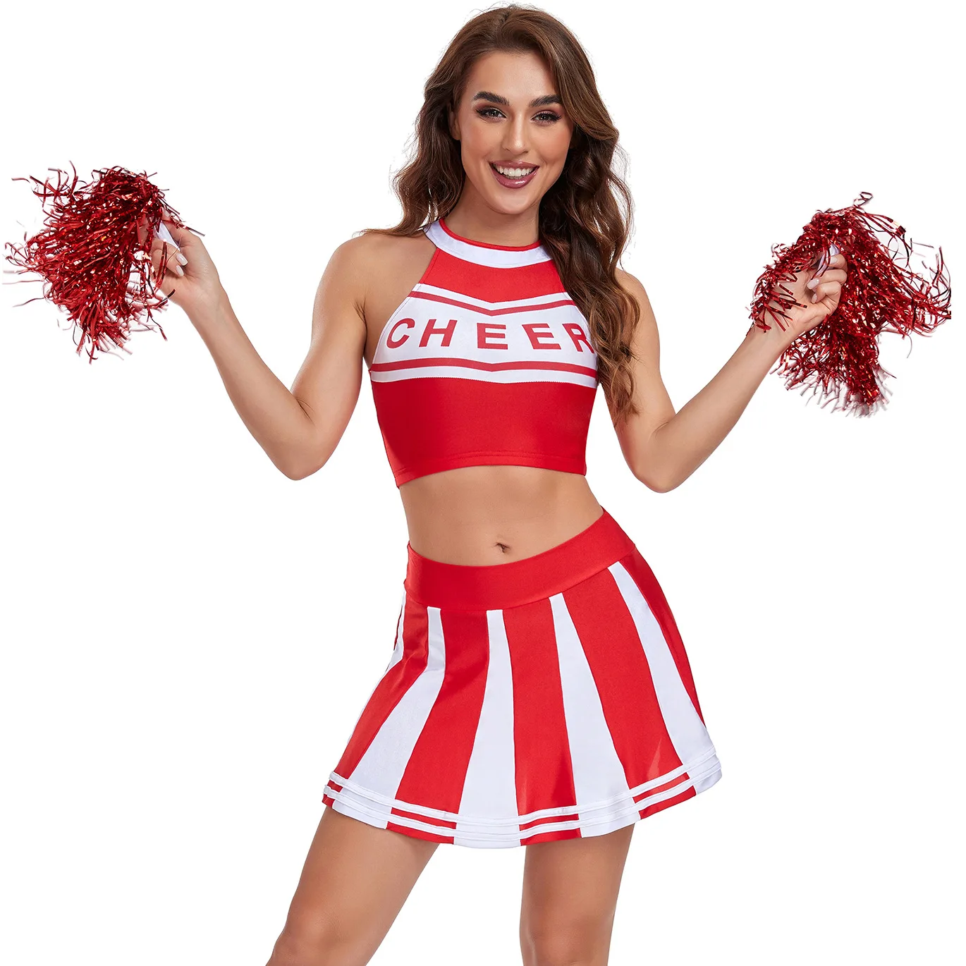 Adult Sexy Cheerleader Outfit Girl Cheer Schoolgirl Gleeing Uniform Halloween Women High School Cheerleading Dress Costume